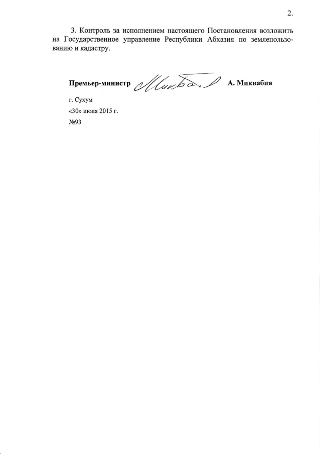 Постановление Кабинета Министров Республики Абхазия от 30.07.2015 № 93 "О внесении изменений в Постановление Кабинета Министров Республики Абхазия от 22.09.2006 г. № 232 "О предоставлении во временное пользование 0,52 га земли в г. Сухум СП ООО "Абаза-тур" для строительства гостиницы"
