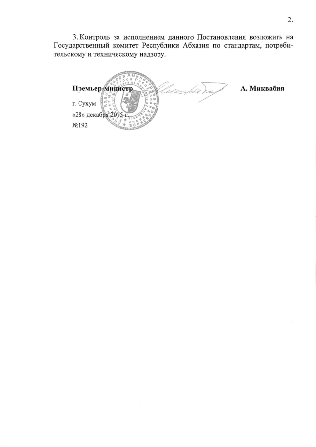 Постановление Кабинета Министров Республики Абхазия от 28.12.2015 № 192 "Об утверждении "Временного порядка аккредитации органов по сертификации, испытательных лабораторий (центров), выполняющих работы по подтверждению соответствия"