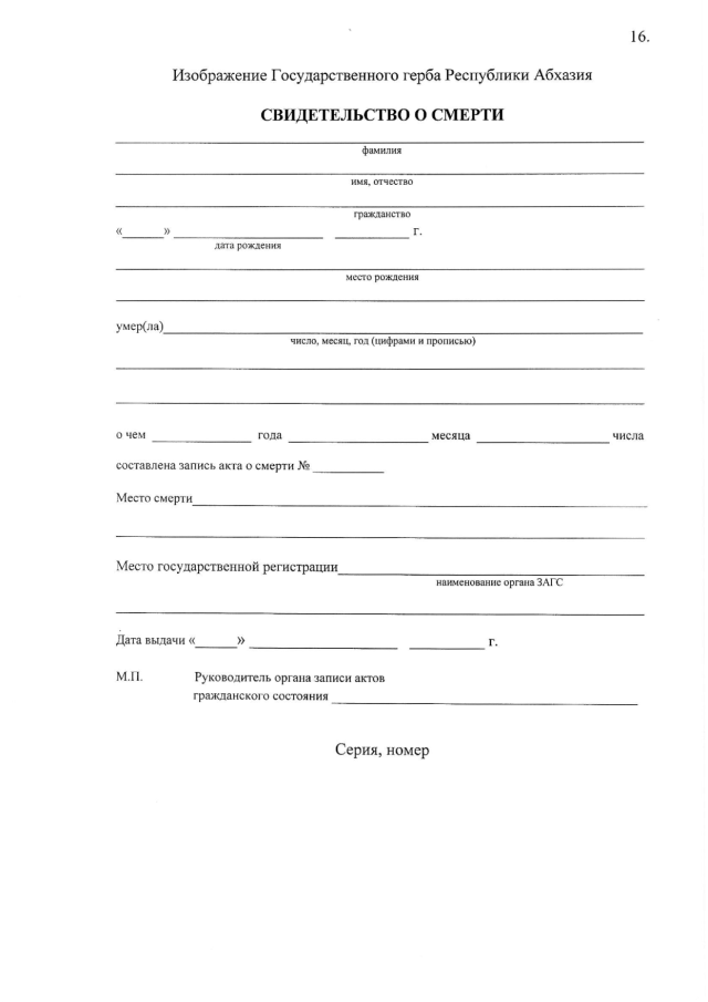 Постановление Кабинета Министров Республики Абхазия от 28.12.2015 № 196 "О внесении изменений в Постановление Кабинета Министров Республики Абхазия от 29 мая 2009 года № 80 "Об утверждении форм бланков записей актов гражданского состояния и форм бланков свидетельств о государственной регистрации актов гражданского состояния"