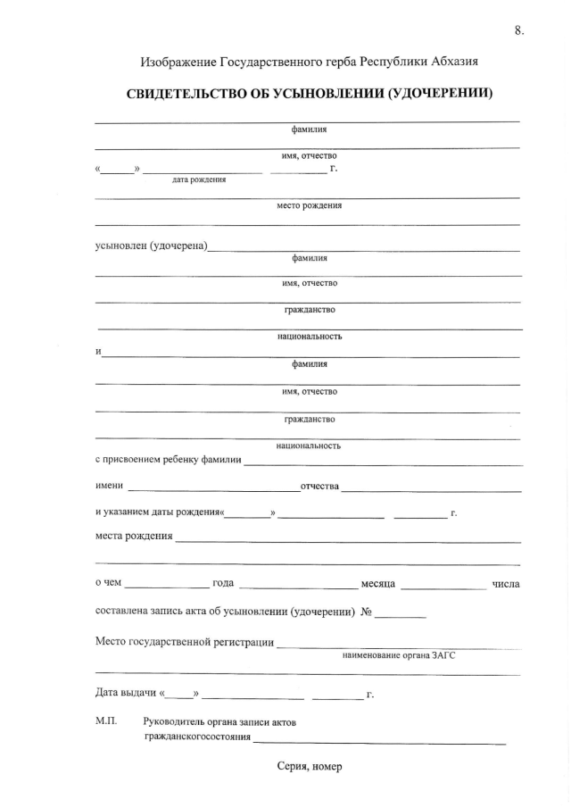 Постановление Кабинета Министров Республики Абхазия от 28.12.2015 № 196 "О внесении изменений в Постановление Кабинета Министров Республики Абхазия от 29 мая 2009 года № 80 "Об утверждении форм бланков записей актов гражданского состояния и форм бланков свидетельств о государственной регистрации актов гражданского состояния"