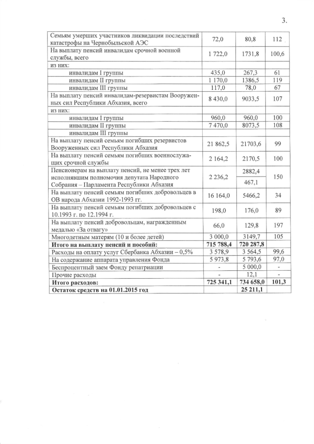 Постановление Кабинета Министров Республики Абхазия от 26.03.2015 № 33/1 "Об исполнении бюджета Пенсионного фонда Республики Абхазия за 2014 год"