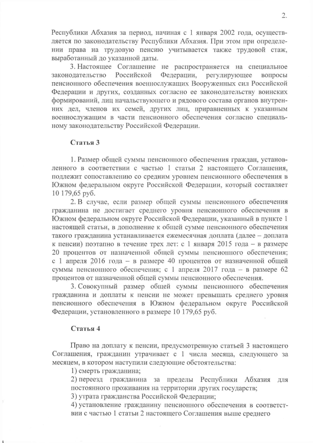 Постановление Кабинета Министров Республики Абхазия от 26.03.2015 № 33 "О проекте Соглашения между Республикой Абхазия и Российской Федерацией о пенсионном обеспечении граждан Российской Федерации, постоянно проживающих на территории Республики Абхазия"