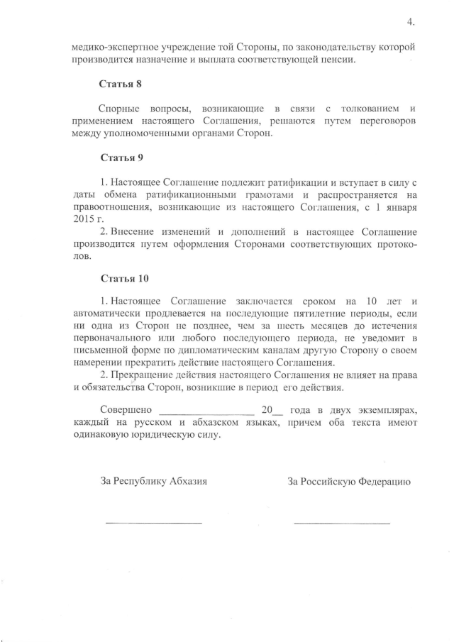 Постановление Кабинета Министров Республики Абхазия от 26.03.2015 № 33 "О проекте Соглашения между Республикой Абхазия и Российской Федерацией о пенсионном обеспечении граждан Российской Федерации, постоянно проживающих на территории Республики Абхазия"
