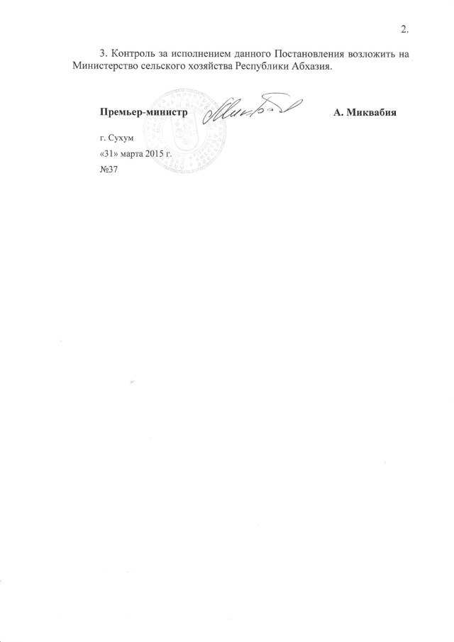 Постановление Кабинета Министров Республики Абхазия от 31.03.2015 № 37 "Об утверждении Прейскурантов цен на агрохимические и фитосанитарные исследования "Государственным учреждением Министерства сельского хозяйства Республики Абхазия "Лаборатория агрохимической и фитосанитарной экспертизы"