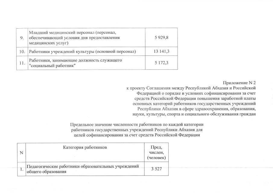 Постановление Кабинета Министров Республики Абхазия от 26.03.2015 № 34 "О проекте Соглашения между Республикой Абхазия и Российской Федерацией о порядке и условиях софинансирования за счет средств Российской Федерации повышения заработной платы основных категорий работников государственных учреждений Республики Абхазия в сфере здравоохранения, образования, науки, культуры, спорта и социального обслуживания граждан"
