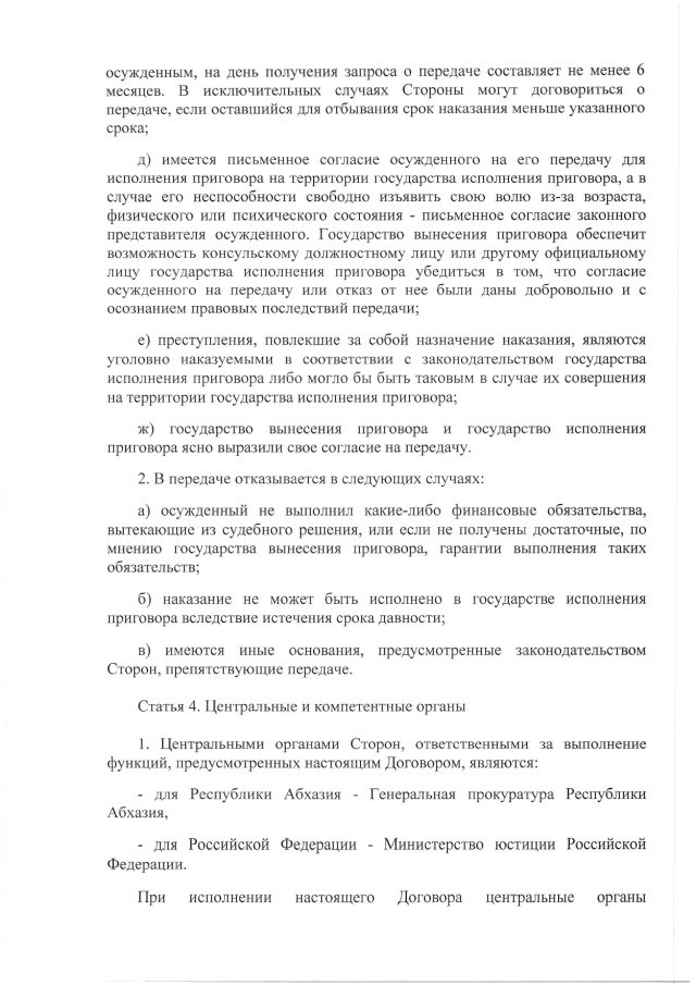 Постановление Кабинета Министров Республики Абхазия от 21.04.2015 № 39 "О проекте Договора между Республикой Абхазия и Российской Федерацией о передаче для отбывания наказания лиц, осужденных к лишению свободы"