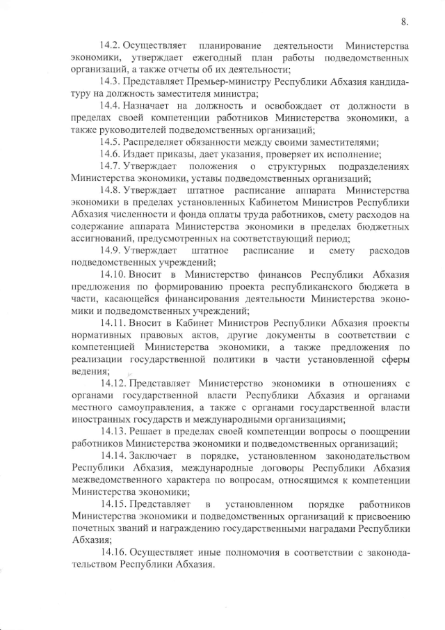 Постановление Кабинета Министров Республики Абхазия от 30.04.2015 № 44 "Об утверждении "Положения о Министерстве экономики Республики Абхазия"