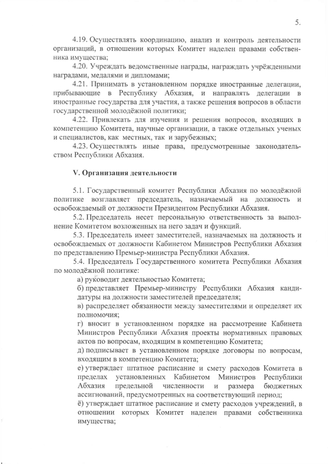 Постановление Кабинета Министров Республики Абхазия от 21.05.2015 № 50 "Об утверждении "Положения о Государственном комитете Республики Абхазия по молодёжной политике"