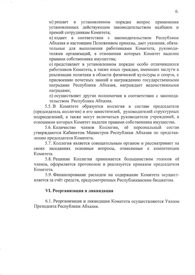 Постановление Кабинета Министров Республики Абхазия от 17.06.2015 № 61 "Об утверждении "Положения о Государственном комитете Республики Абхазия по физической культуре и спорту"