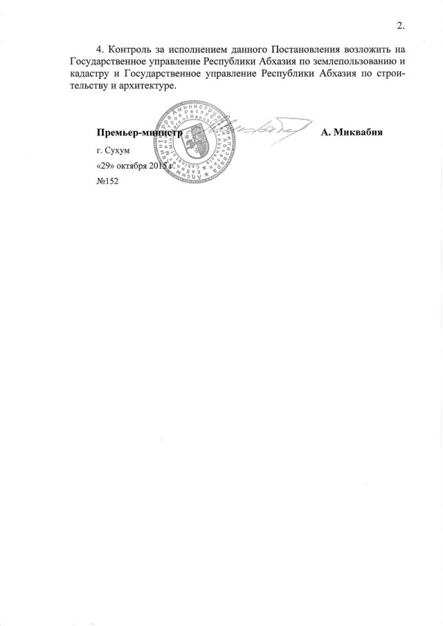 Постановление Кабинета Министров Республики Абхазия от 29.10.2015 № 152 "О даче согласия Администрации г. Сухум на предоставление ООО "Три семерки" 0,24 га земли в г. Сухум для строительства гостинично-офисного центра"