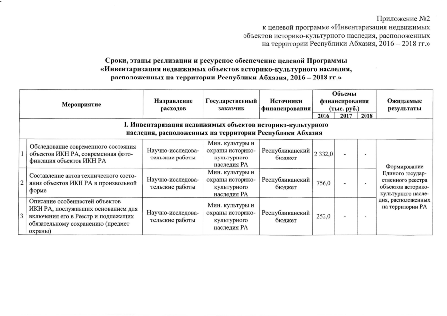Постановление Кабинета Министров Республики Абхазия от 10.12.2015 № 171 "Об утверждении целевой программы "Инвентаризация недвижимых объектов историко-культурного наследия, расположенных на территории Республики Абхазия, 2016-2018 гг."