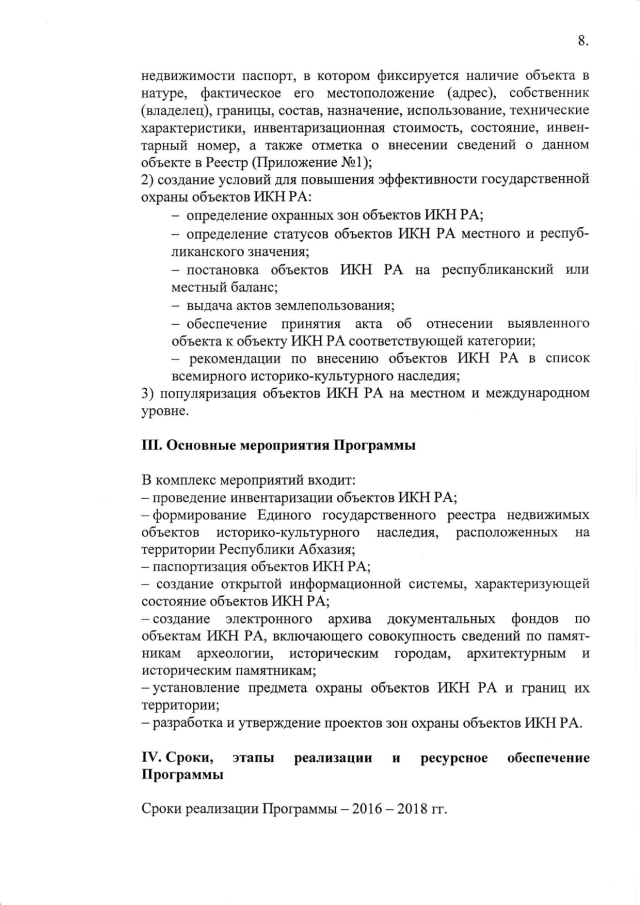 Постановление Кабинета Министров Республики Абхазия от 10.12.2015 № 171 "Об утверждении целевой программы "Инвентаризация недвижимых объектов историко-культурного наследия, расположенных на территории Республики Абхазия, 2016-2018 гг."