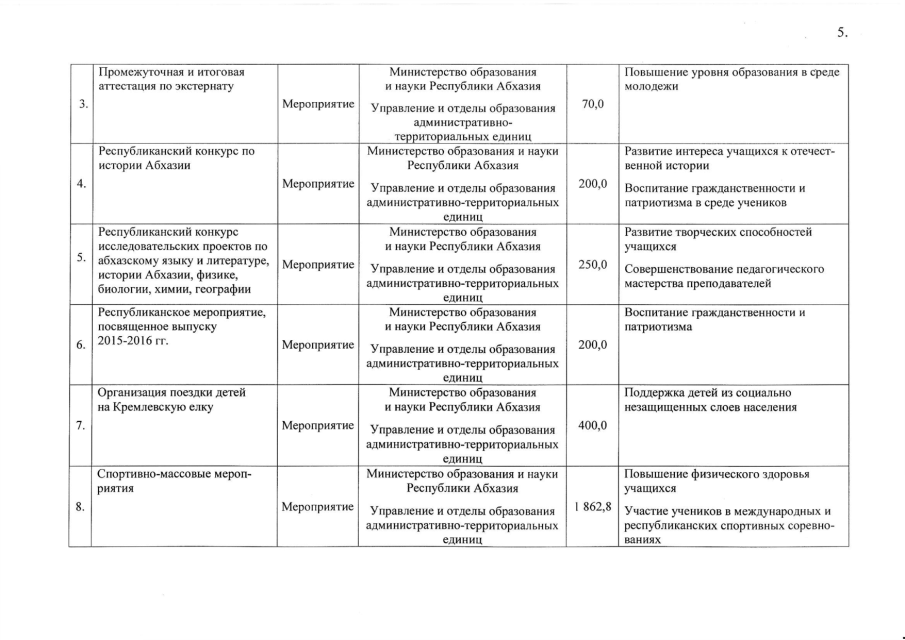 Постановление Кабинета Министров Республики Абхазия от 10.12.2015 № 172 "Об утверждении целевой программы "Образование-2016"