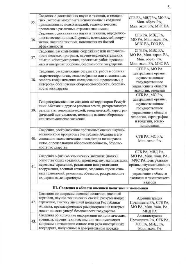 Постановление Кабинета Министров Республики Абхазия от 10.12.2015 № 177 "О "Перечне сведений, отнесенных к государственной тайне"