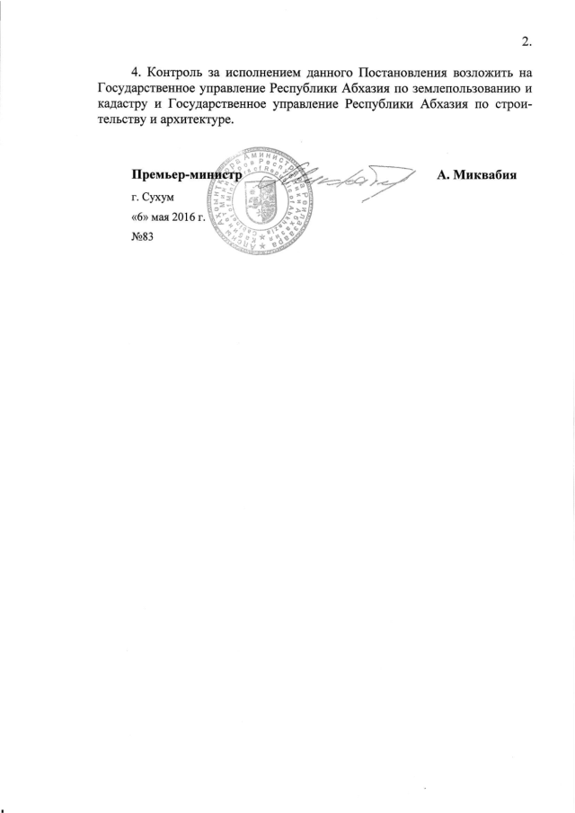 Постановление Кабинета Министров Республики Абхазия от 06.05.2016 № 83 "О даче согласия Администрации Гагрского района на предоставление ООО "Нана" 0,49 га земли в г. Гагра для строительства санаторно-курортного объекта"