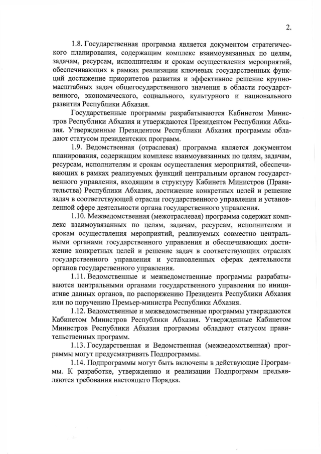 Постановление Кабинета Министров Республики Абхазия от 14.07.2016 № 119 "Об утверждении "Порядка разработки, принятия и реализации государственных, ведомственных и межведомственных программ в Республике Абхазия"