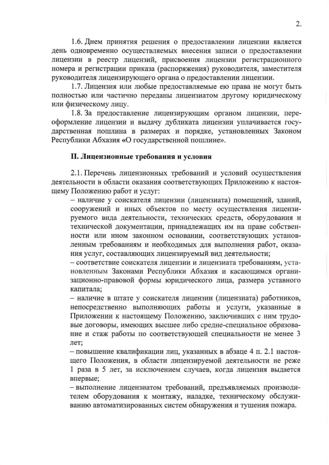 Постановление Кабинета Министров Республики Абхазия от 29.07.2016 № 140 "Об утверждении "Положения о лицензировании деятельности по монтажу, наладке, техническому обслуживанию автоматизированных систем обнаружения и тушения пожара"