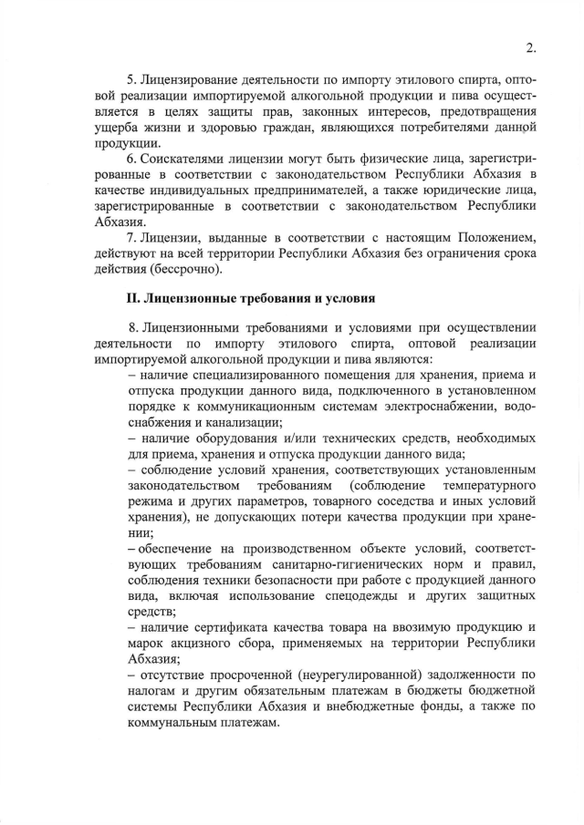 Постановление Кабинета Министров Республики Абхазия от 29.07.2016 № 141 "Об утверждении "Положения о порядке лицензирования деятельности по импорту этилового спирта, оптовой реализации импортируемой алкогольной продукции и пива"