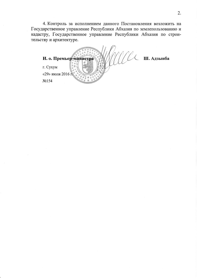 Постановление Кабинета Министров Республики Абхазия от 29.07.2016 № 154 "О даче согласия Администрации Гудаутского района на предоставление ИП Смыр Г.Д. 0,55 га земли в г. Новый Афон для строительства объекта размещения гостиничного типа"