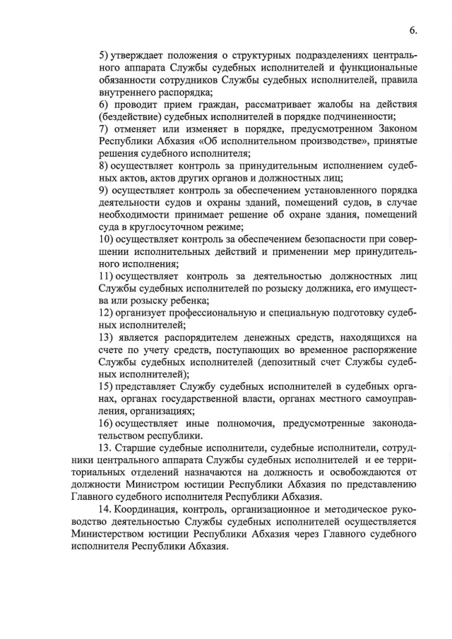 Постановление Кабинета Министров Республики Абхазия от 28.12.2016 № 218 "О Службе судебных исполнителей Министерства юстиции Республики Абхазия"