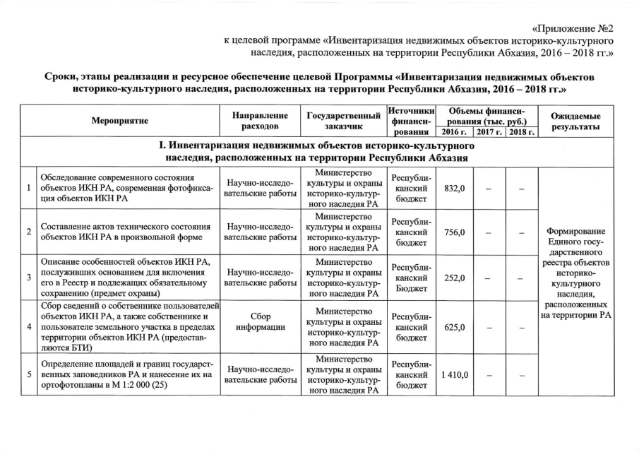 Постановление Кабинета Министров Республики Абхазия от 28.12.2016 № 225 "О внесении изменений в целевую программу "Инвентаризация недвижимых объектов историко-культурного наследия, расположенных на территории Республики Абхазия, 2016-2018 гг.", утвержденную Постановлением Кабинета Министров Республики Абхазия от 10 декабря 2015 г. № 171"