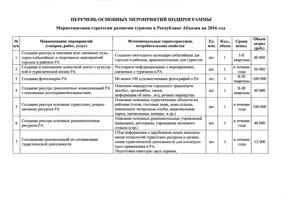 Постановление Кабинета Министров Республики Абхазия от 28.12.2016 № 226 "О внесении изменений в Постановление Кабинета Министров Республики Абхазия от 28 января 2016 г. № 2 "Об утверждении целевой программы "Развитие туризма в Республике Абхазия на 2016 год"
