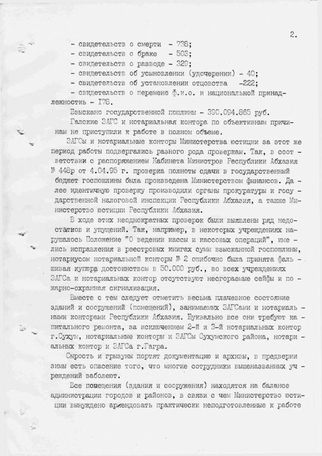 Постановление Кабинета Министров Республики Абхазия от 27.12.1995 № 307 "О работе органов ЗАГСа и Нотариата Республики Абхазия за 9 месяцев 1995 года"