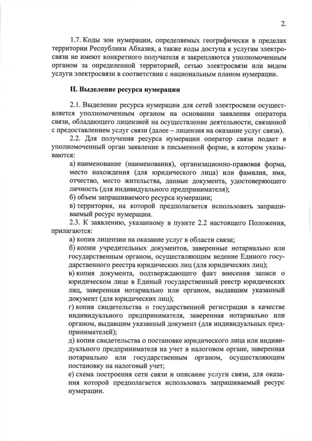 Постановление Кабинета Министров Республики Абхазия от 27.05.2016 № 89 "Об утверждении "Порядка распределения и использования ресурсов нумерации единой сети электросвязи Республики Абхазия"