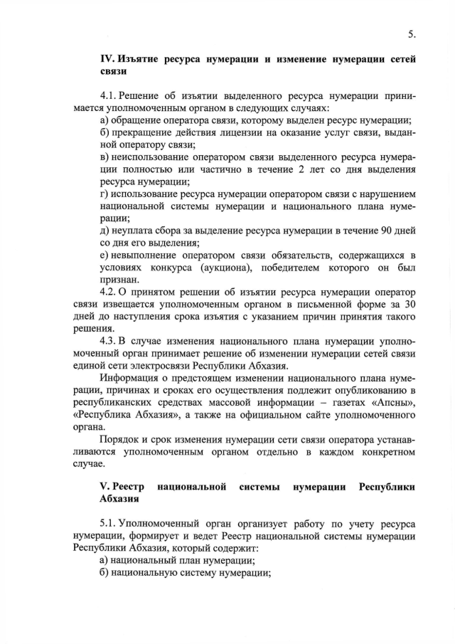 Постановление Кабинета Министров Республики Абхазия от 27.05.2016 № 89 "Об утверждении "Порядка распределения и использования ресурсов нумерации единой сети электросвязи Республики Абхазия"