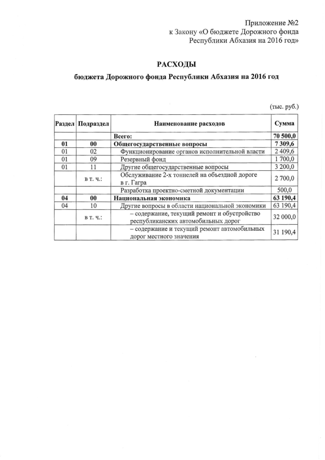 Постановление Кабинета Министров Республики Абхазия от 23.11.2016 № 187 "О проекте Закона Республики Абхазия "О внесении изменений в Закон Республики Абхазия "О бюджете Дорожного фонда на 2016 год"