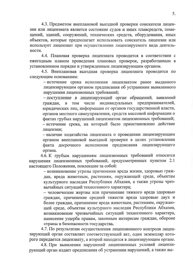 Постановление Кабинета Министров Республики Абхазия от 23.11.2016 № 190 "Об утверждении Положения "О лицензировании промышленной добычи водных биоресурсов"