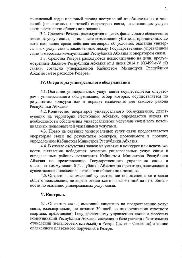 Постановление Кабинета Министров Республики Абхазия от 17.03.2016 № 24 "Об утверждении "Положения о Резерве универсального обслуживания"