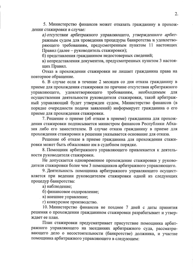 Постановление Кабинета Министров Республики Абхазия от 17.03.2016 № 25 "Об утверждении "Правил проведения стажировки в качестве помощника арбитражного управляющего"