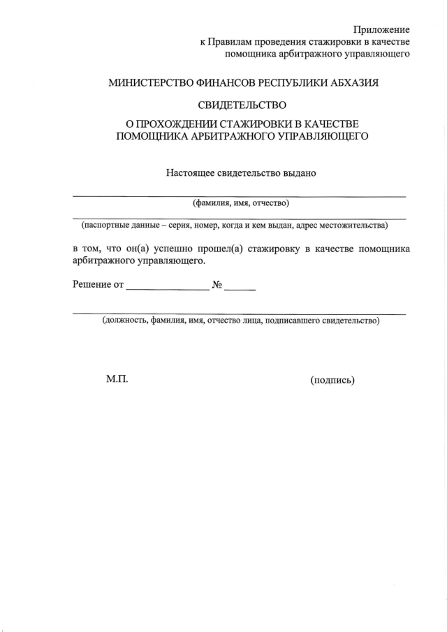 Постановление Кабинета Министров Республики Абхазия от 17.03.2016 № 25 "Об утверждении "Правил проведения стажировки в качестве помощника арбитражного управляющего"