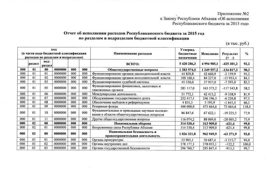Постановление Кабинета Министров Республики Абхазия от 25.03.2016 № 32 "Об исполнении Республиканского бюджета за 2015 год"