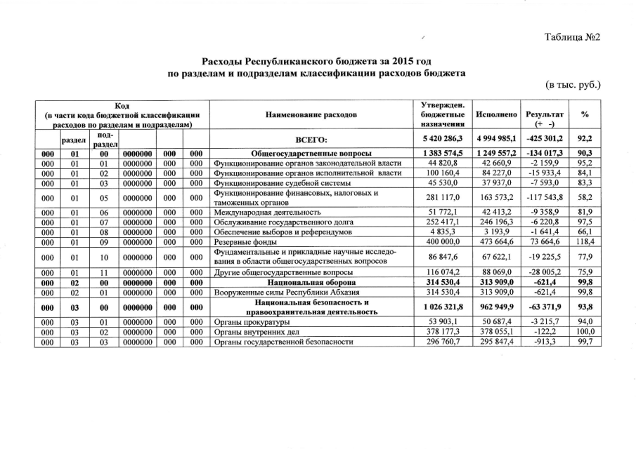 Постановление Кабинета Министров Республики Абхазия от 25.03.2016 № 32 "Об исполнении Республиканского бюджета за 2015 год"