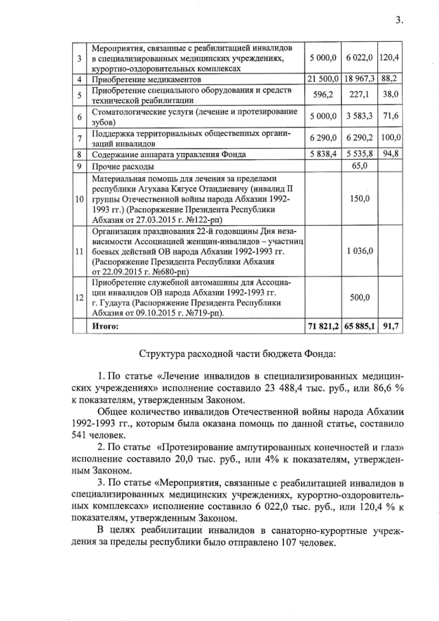 Постановление Кабинета Министров Республики Абхазия от 25.03.2016 № 33 "Об исполнении бюджета Государственного внебюджетного фонда инвалидов Отечественной войны народа Абхазии 1992-1993 гг. за 2015 год"
