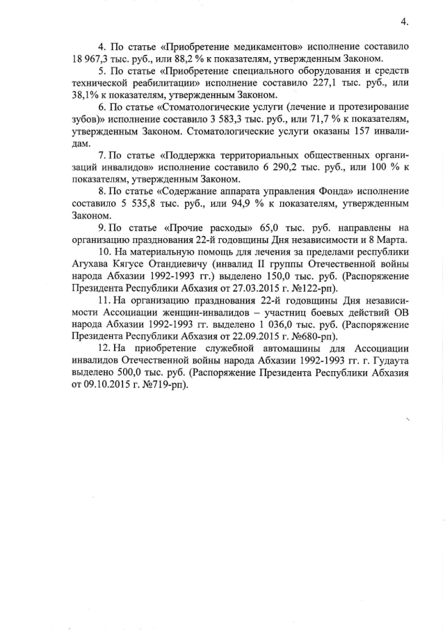 Постановление Кабинета Министров Республики Абхазия от 25.03.2016 № 33 "Об исполнении бюджета Государственного внебюджетного фонда инвалидов Отечественной войны народа Абхазии 1992-1993 гг. за 2015 год"