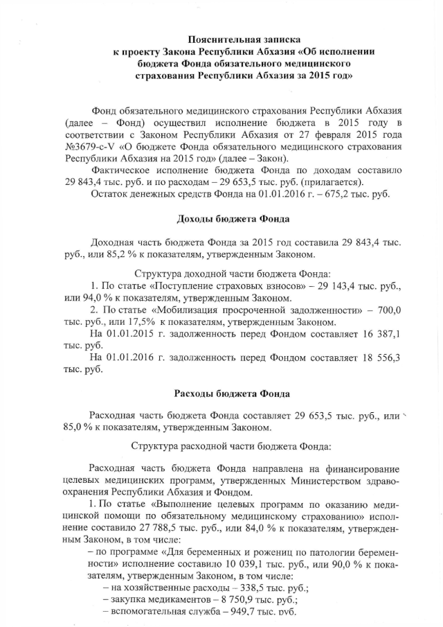 Постановление Кабинета Министров Республики Абхазия от 25.03.2016 № 34 "Об исполнении бюджета Фонда обязательного медицинского страхования Республики Абхазия за 2015 год"