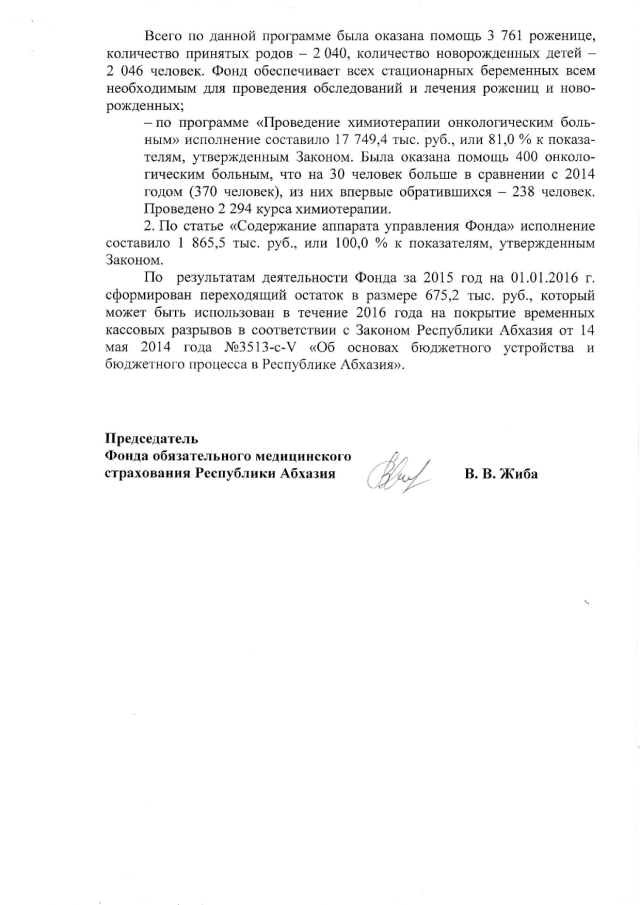 Постановление Кабинета Министров Республики Абхазия от 25.03.2016 № 34 "Об исполнении бюджета Фонда обязательного медицинского страхования Республики Абхазия за 2015 год"