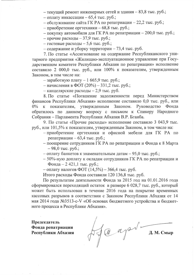 Постановление Кабинета Министров Республики Абхазия от 25.03.2016 № 35 "Об исполнении бюджета Фонда репатриации Республики Абхазия за 2015 год"