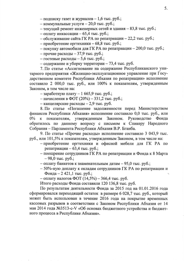 Постановление Кабинета Министров Республики Абхазия от 25.03.2016 № 35 "Об исполнении бюджета Фонда репатриации Республики Абхазия за 2015 год"