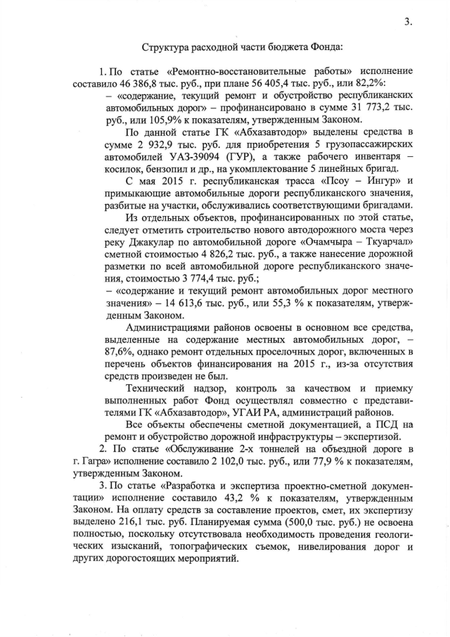 Постановление Кабинета Министров Республики Абхазия от 25.03.2016 № 36 "Об исполнении бюджета Дорожного фонда Республики Абхазия за 2015 год"