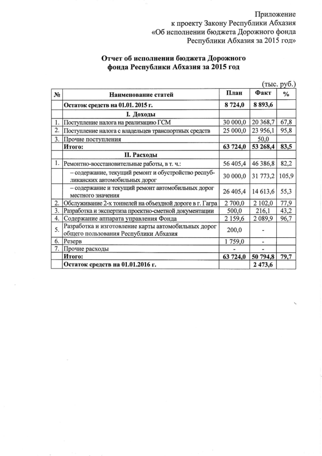 Постановление Кабинета Министров Республики Абхазия от 25.03.2016 № 36 "Об исполнении бюджета Дорожного фонда Республики Абхазия за 2015 год"