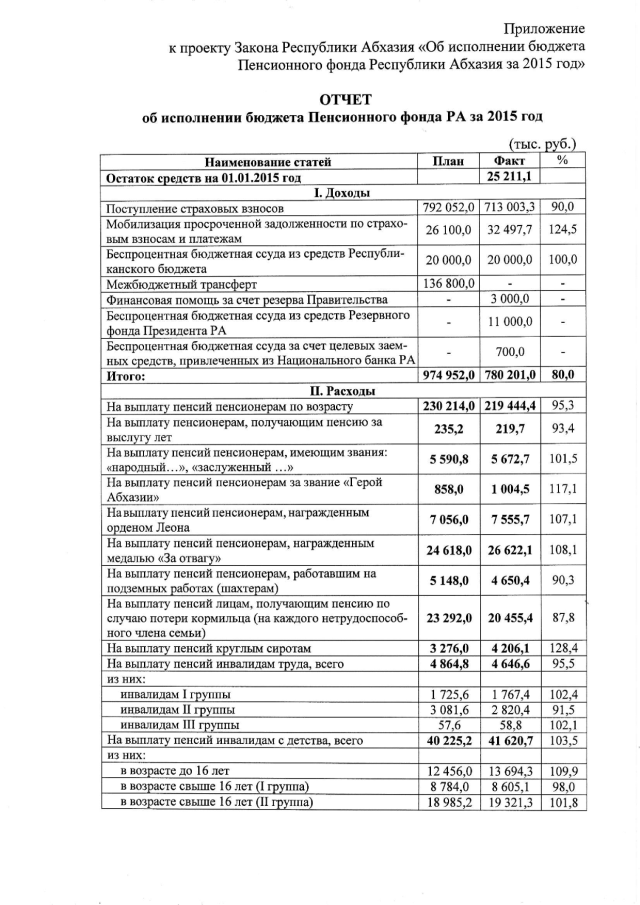 Постановление Кабинета Министров Республики Абхазия от 25.03.2016 № 37 "Об исполнении бюджета Пенсионного фонда Республики Абхазия за 2015 год"