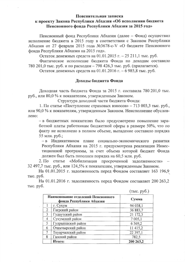 Постановление Кабинета Министров Республики Абхазия от 25.03.2016 № 37 "Об исполнении бюджета Пенсионного фонда Республики Абхазия за 2015 год"