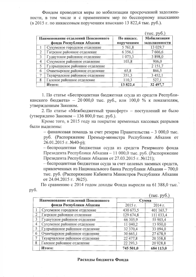 Постановление Кабинета Министров Республики Абхазия от 25.03.2016 № 37 "Об исполнении бюджета Пенсионного фонда Республики Абхазия за 2015 год"