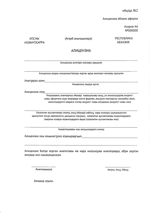 Постановление Кабинета Министров Республики Абхазия от 19.04.2016 № 44 "О внесении изменения в Постановление Кабинета Министров Республики Абхазия от 10.12.2015 г. № 174 "Об утверждении "Перечня органов исполнительной власти, осуществляющих лицензирование конкретных видов деятельности" и "Формы бланка лицензии"