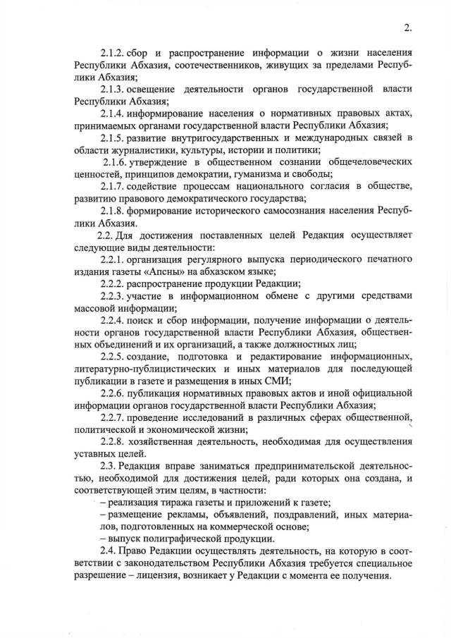 Постановление Кабинета Министров Республики Абхазия от 19.04.2016 № 43 "О Республиканском государственном учреждении "Редакция газеты "Апсны"