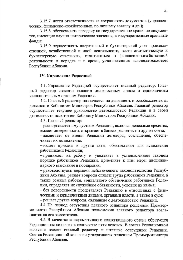 Постановление Кабинета Министров Республики Абхазия от 19.04.2016 № 43 "О Республиканском государственном учреждении "Редакция газеты "Апсны"